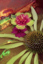 Diane designs imaginary gardens using a macro lens, flowers, shells, ceramics & water. Her images are created using no manipulation.