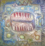The narratives which I produce are depictions of concepts. My work is informed by the fact that I am a woman, an Israeli by birth, the daughter of Shoah (Holocaust) survivors and a Jew. I make religious, cultural and geographical references to these themes in my art. The process for creating the pieces begins with a written thought on which I build visual images. I then hone the composition with finished pen and ink drawings prior to completing the paintings. By using specific colors, poses, objects and observational view points, I load each pastiche with meaning. I apply upwards of ten layers on the surface. My technique of painting in acrylic on wood panel, uses the living grain of the wood to enhance the interior movement of the painting.