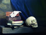 Oil painting on linen titled “Books and Bricks.” This is one of my most recent works. I took a hiatus from graphic design to return to my fine art background. I have been studying realism at the School of Representational Art. This painting is a metaphor: the words contained in books have the same power as bricks .